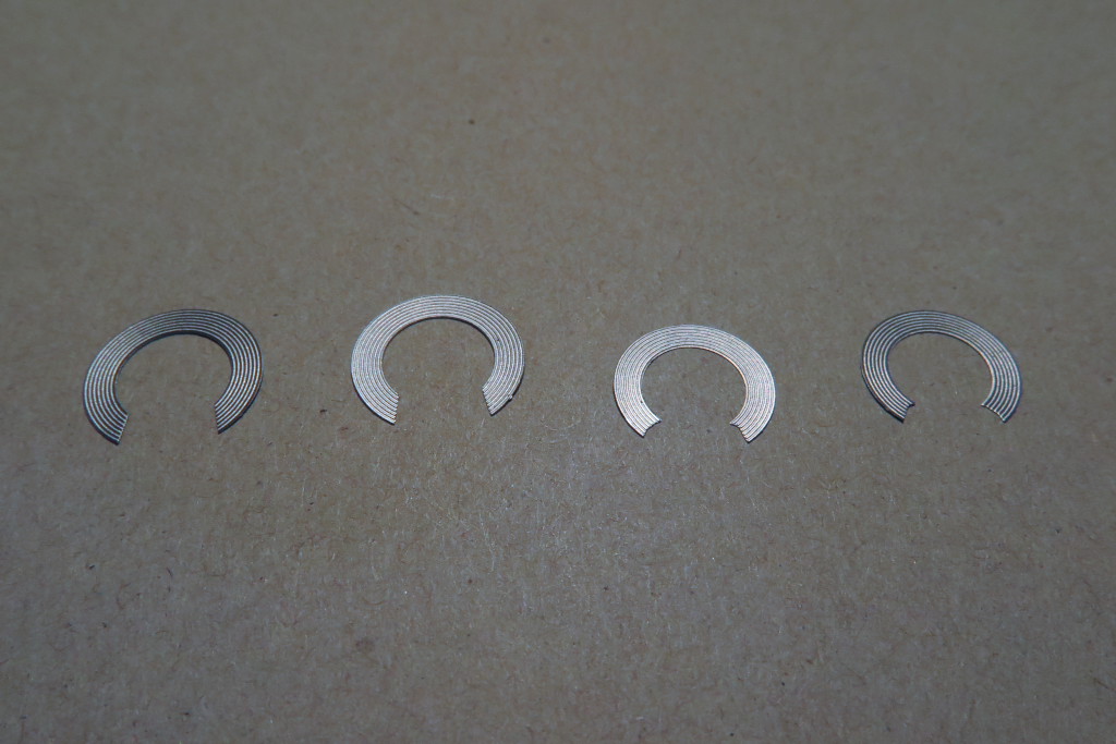 パーツを切り離してエッジを処理した所です。ちなみに視力検査ではありません。4輪のブレーキのディスクです。