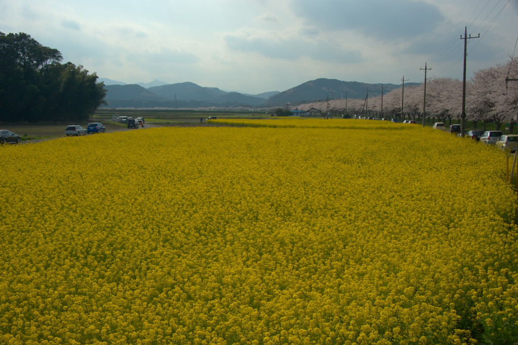 菜の花が一面に咲いており、桜と競演してすばらしい風景となっていました。