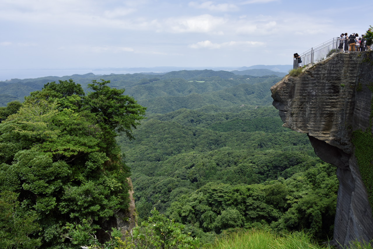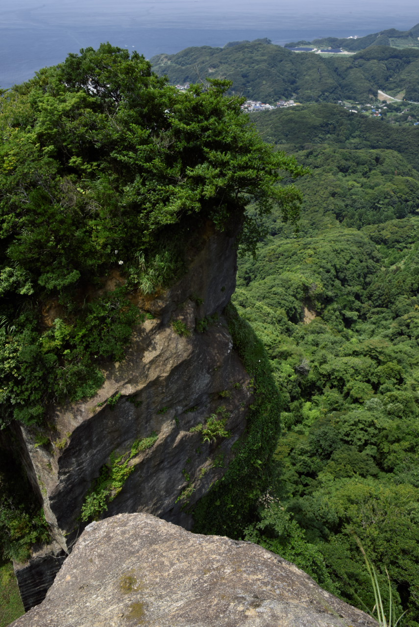 苦労した甲斐あってか見事な絶景でした。これは地獄のぞきを外から見たところ。かなり飛び出ています。もし、崩れでもしたら...