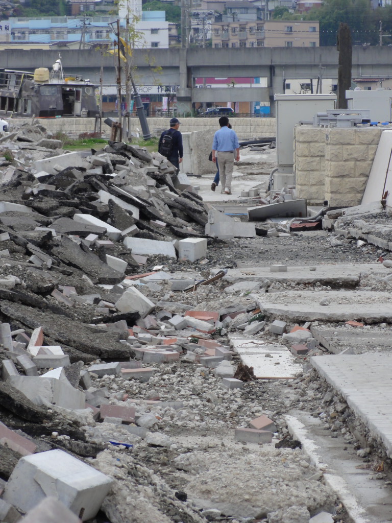 塩竃港の近くは2ヶ月以上たっていても、まだ壊れたり痛んだままになっている所もありました。
