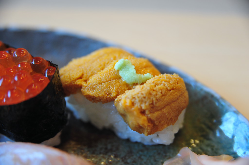 1枚目は鱶鰭、2~4枚目:中トロと雲丹は塩だけで食べるのですが、埼玉では味わえない、まさに目が覚める様な感激です。