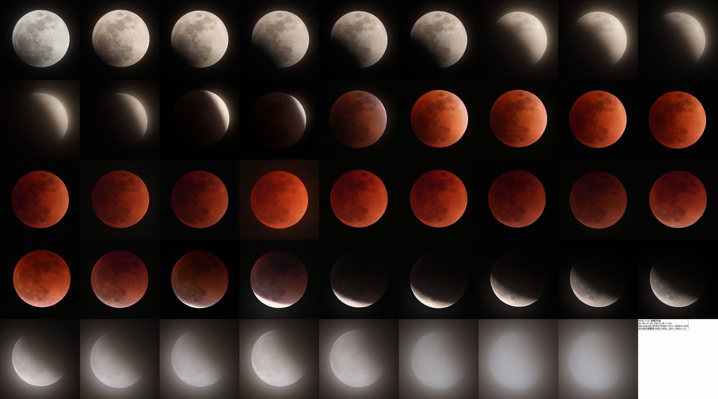 ひたすら、月食の写真を加工していました。