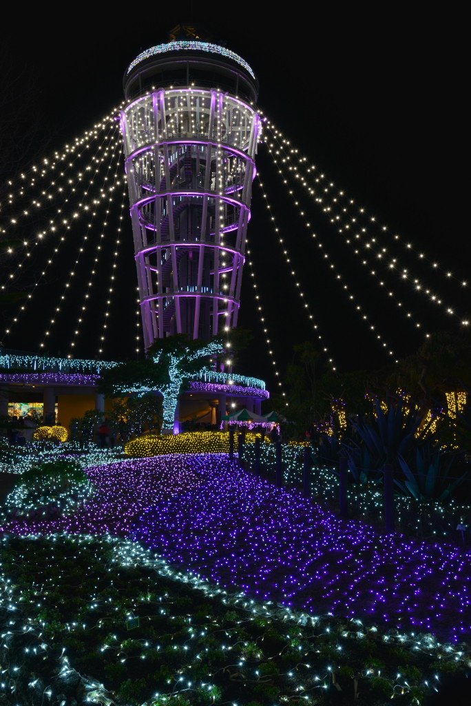 江の島のイルミ。吾妻山公園の帰りに立ち寄りました。吾妻山公園も江の島もどちらも階段や坂道を相当上ります。今日になって足腰に痛みが…