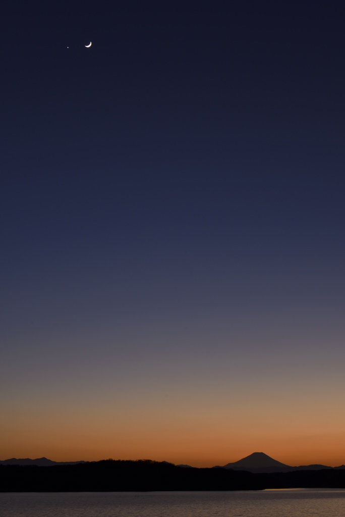 月と金星が寄り添う様に居たので、一緒におさめてみました。