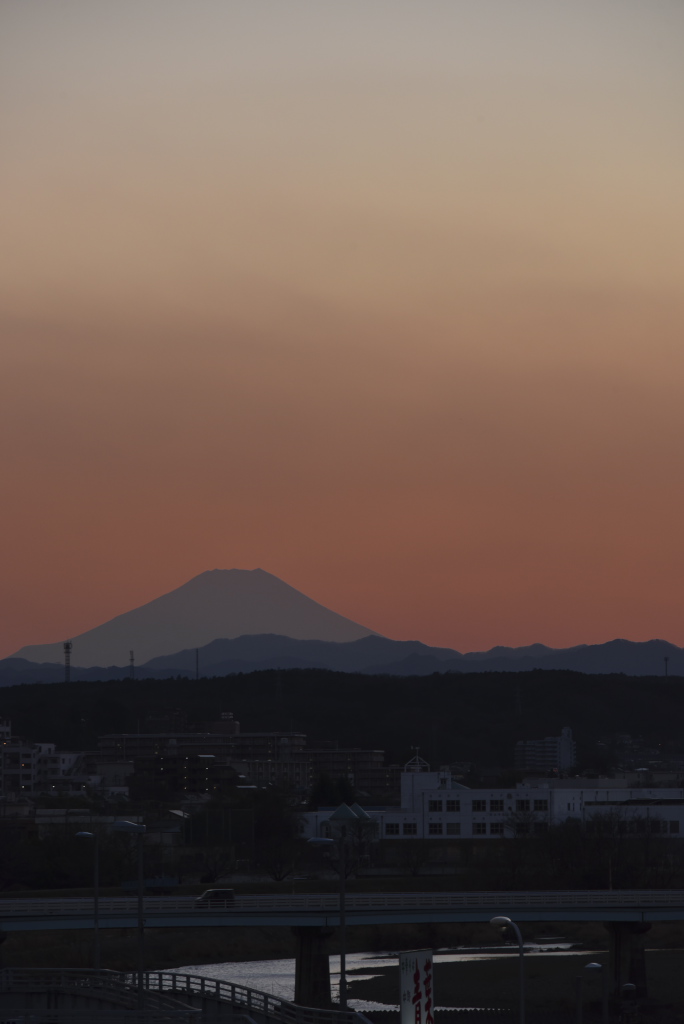 富士山の左脇にはマンションが建っている為、アングルは限られますが、縦位置で構図を決めてみました。