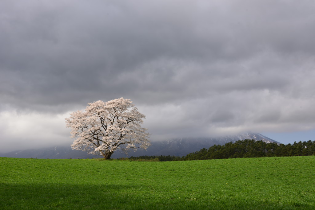 その後、小岩井一本桜へ行くもバックの岩手山が全く見えず。。。