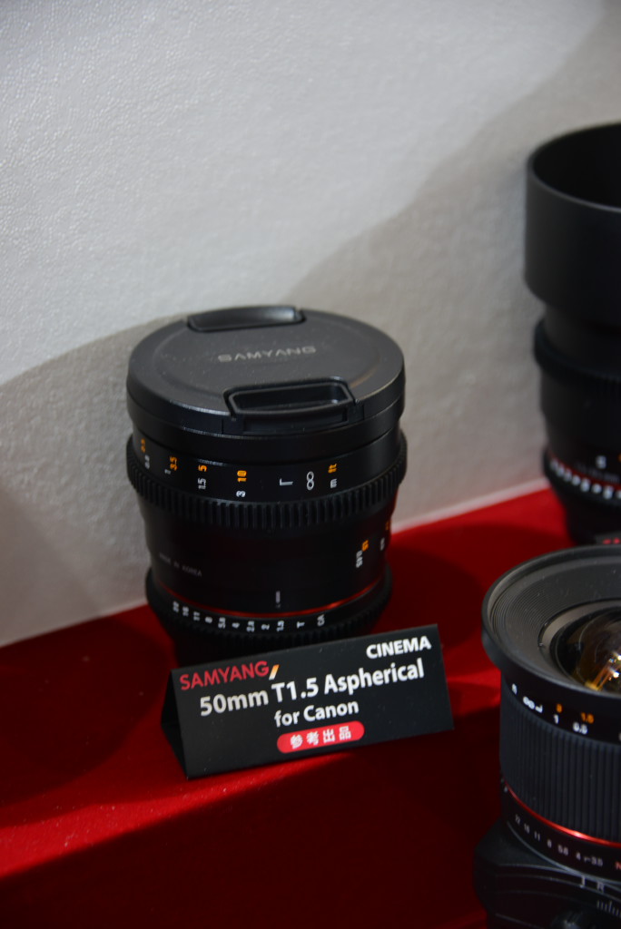 SAMYANG 50mm/T1.5(f1.4):MFですが、安くて性能が良いと評判のメーカーのレンズです。これはCanon EFマウント(シネ)用でキャップも取れない完全なモック品でした。NikonFマウントのカメラ版が出るのを期待。