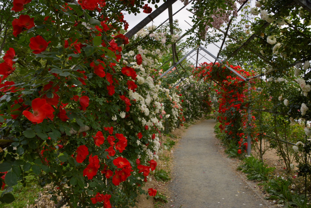 今日は急遽の休日出勤でしたが、午前中で終了しました。天気も良くなってきたので、そのまま近くのバラのトンネルで有名な所へ行ってきました。トンネルの中は暗めで外が明るい為、露出補正に苦労しまして、結果的にアップの写真が多くなりました。