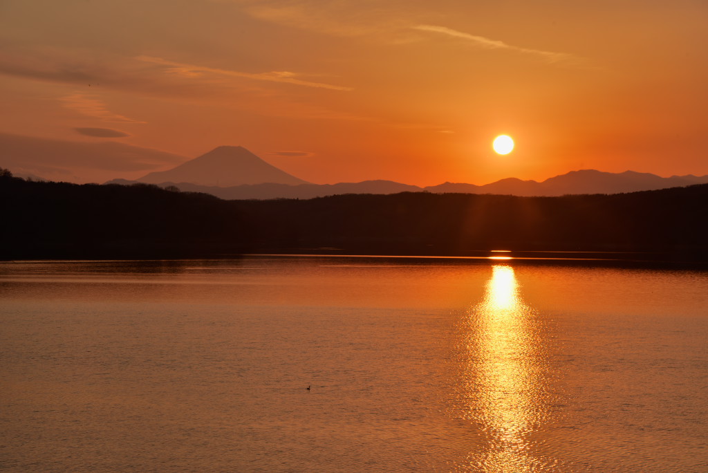 その後は狭山湖へ移動して夕日と富士山を飽きずに眺めていました。