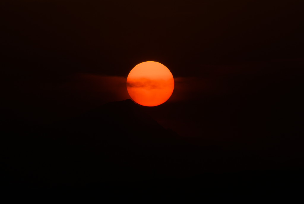 市の祭りの為、いつも富士山や夕日を撮影するスーパーに行く通りは通行止めになっていました。その為、別のスーパーの屋上から撮影。今日は沈む所までしっかり見えました。