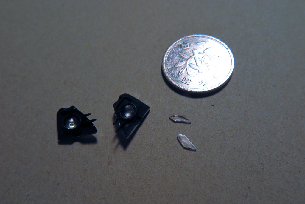 何とかレンズを嵌めました。続いてサイドマーカーを切り出しました。これがまたとても小さい部品です。