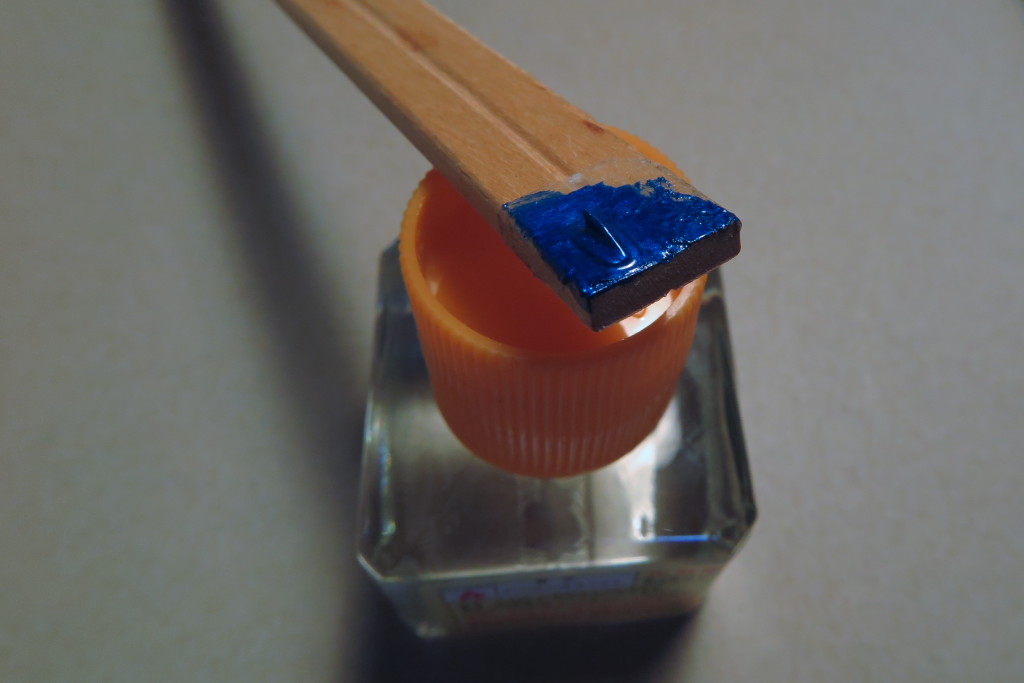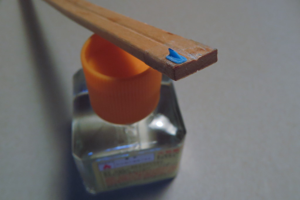 先程のランナーはライトになるので裏面を銀色に塗装します。細かい部品を塗る時はこうすると便利ですね。