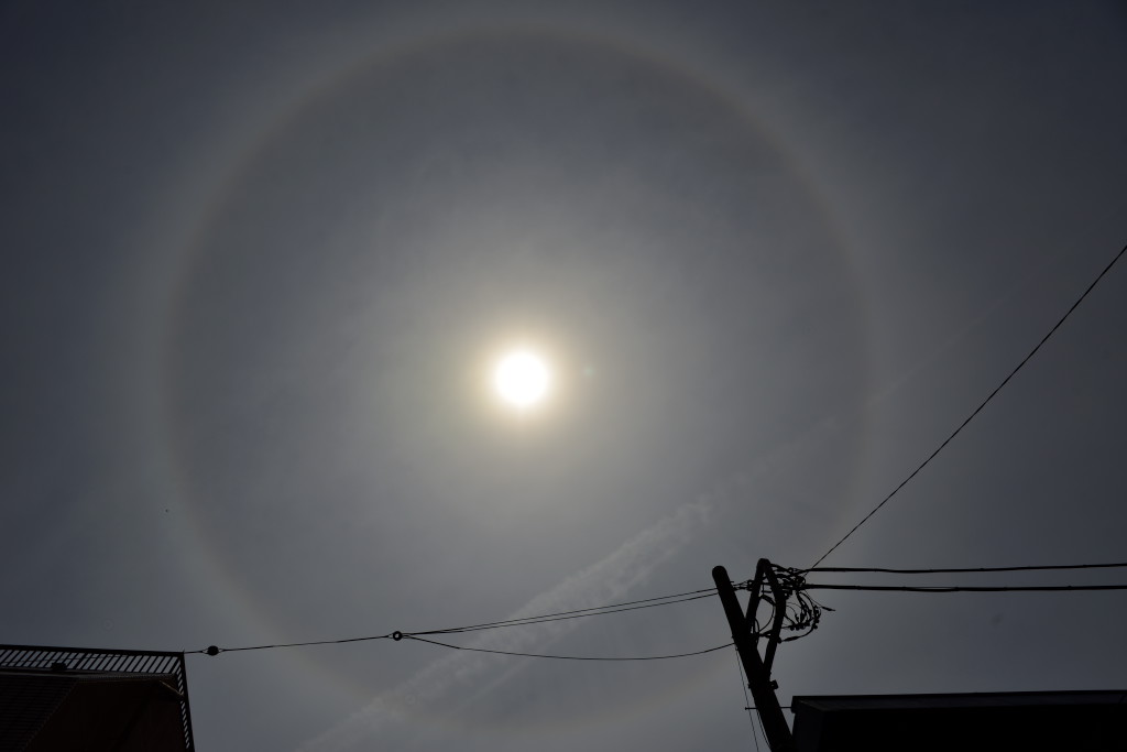 駅まで行く途中で、ふと気づくと日暈が・・・