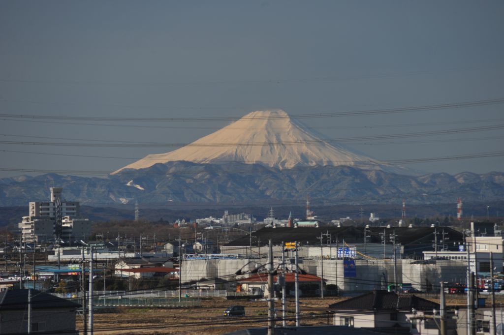 電線は邪魔ですが、朝方で日の当たる雪化粧・富士が印象的でした。