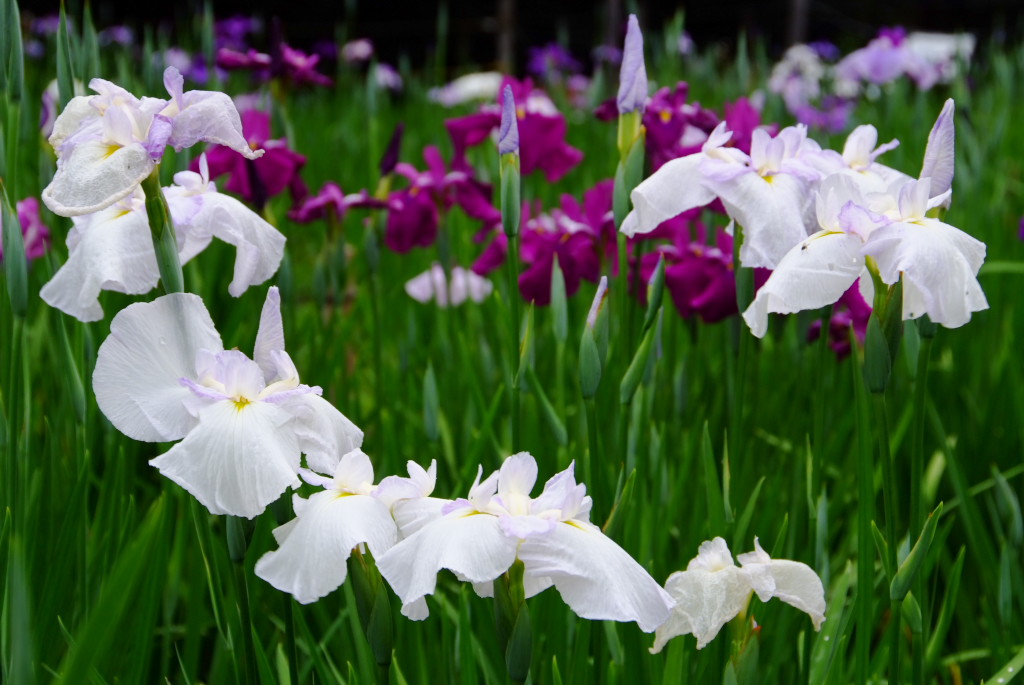 そろそろ菖蒲の見頃と思って先週に引き続き出かけました。入り口近くはまだでしたが、北側はごらんの通りでいい感じでした。