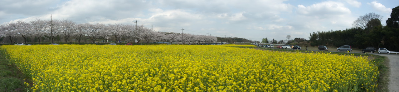 菜の花が一面に咲いており、桜と競演してすばらしい風景となっていました。