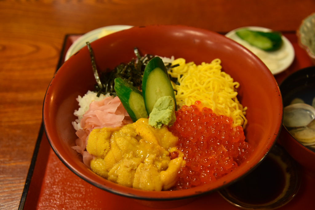 那珂湊のお魚市場にて。昼時はどこも混んでいました。
