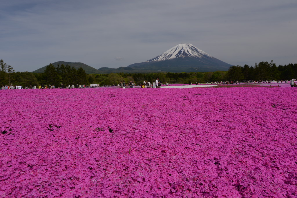 今年の芝桜は秩父だけ。しかし、天気も花もイマイチでしたので今日は本栖湖(富士山)まで芝桜を見に行ってきました。往きは河口湖ICまで順調でしたが、一般道の途中から動かなくなり、臨時駐車場からシャトルバスで会場へ。