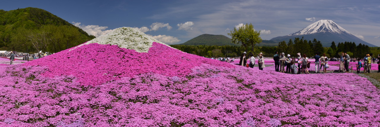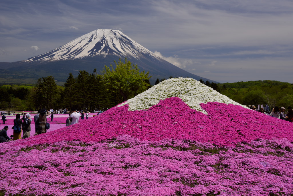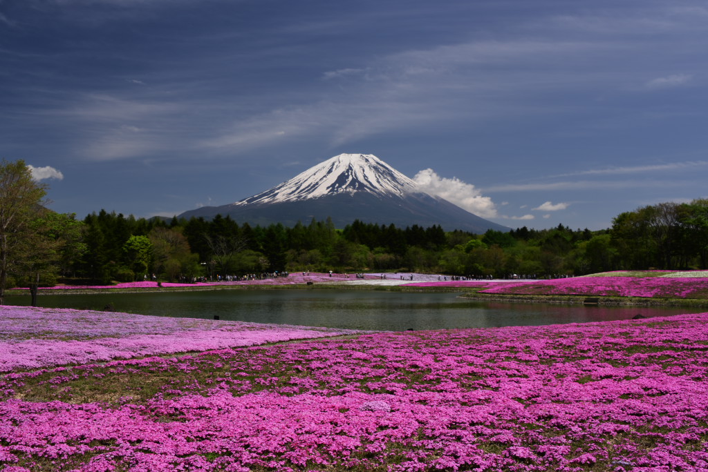 真正面から富士山、龍神池、芝桜をおさめてみました。