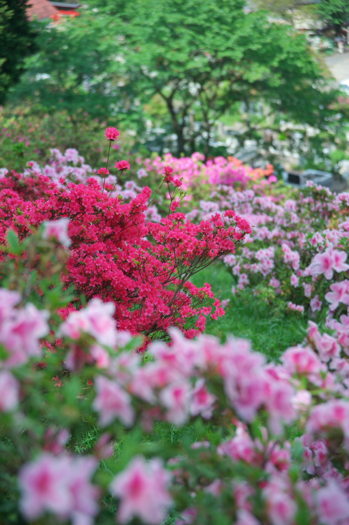 ①仙元山見晴らしの丘公園 小さめの公園ですが、長いローラーすべり台とアスレチックジムがあり、子供を遊ばせに行ってきました。 展望台からの景色も見ごたえがあります。 ②五大尊つつじ公園 こちらは新聞に見頃と載っていたという安易な理由で行ってきました。 花や景色は良かったのですが、かなりの急坂で足場も悪く、思った様には撮れませんでした。 新聞によると後1週間は見頃が続きます。 また現地の人が言うには、紫のがこれから咲くそうです。