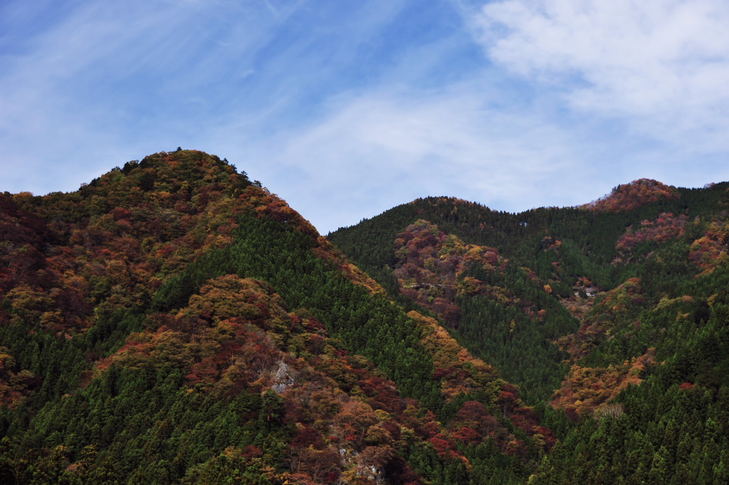 紅葉の進み具合としては見頃ですが、山の陰になってあまり日があたらず、また曇ってきてしまいました。
