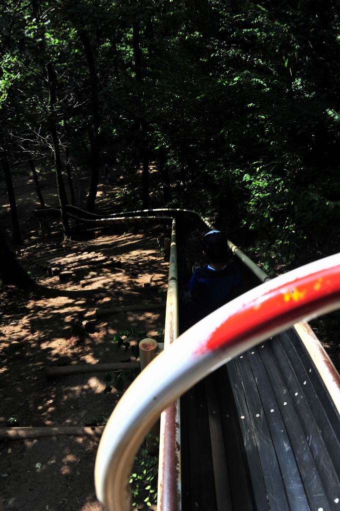 ②時間が大分余ったので、もう少し足を延ばして野山北・六道山公園へ行きました。葡萄に続いて、豊富なアスレチックに次男もご満悦の様子でした。