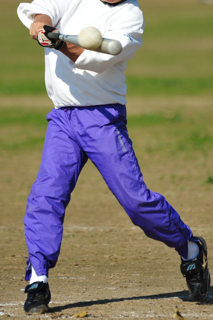 たぶん、当日有一のヒットの瞬間ではないでしょうか?ちゃんとボールが当たってますね。ボテボテのゴロばかりの日でしたので、こんなにちゃんと当たったのはほとんどありませんでした。