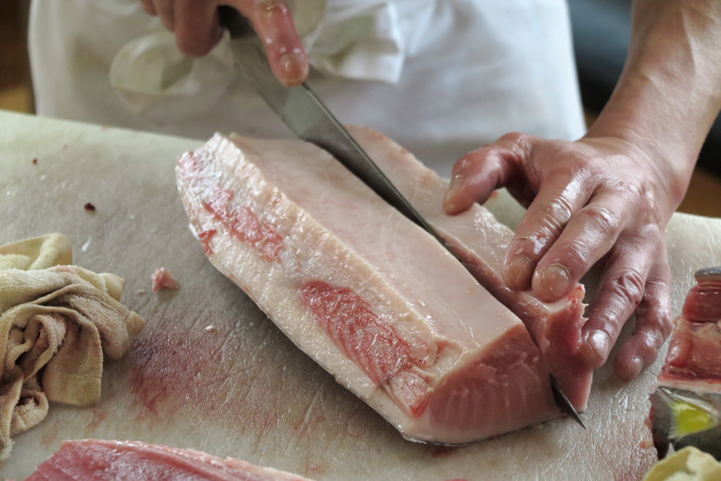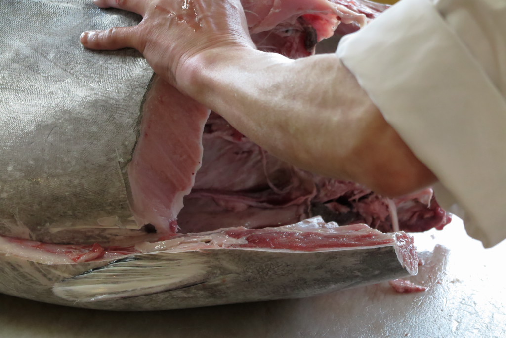 今日はマグロの解体ショーをみながら昼食をとりました。