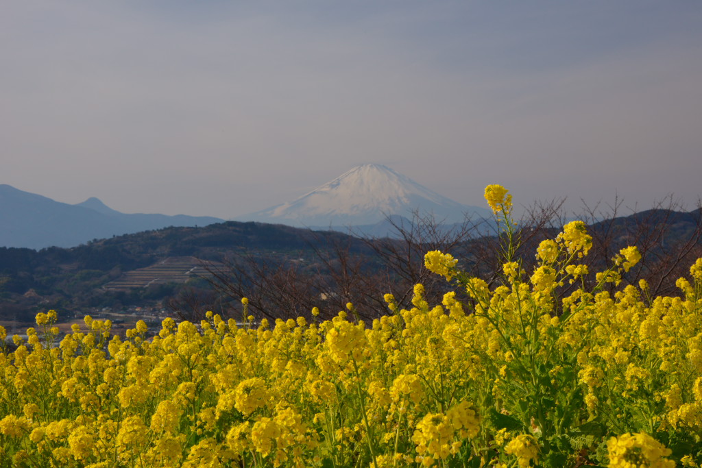 たどり着いてみれば、たくさん咲いていて見頃な菜の花と大きく見える富士山がとてもいい感じです。