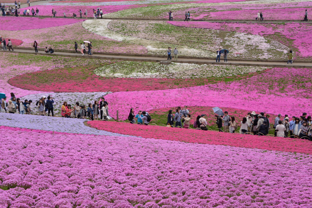 残念ながら正直言って天気も芝桜もイマイチでした。お姉さんの集団や年配夫婦、カップルの合計4~5組にシャッター押しを頼まれてしまいました。上から見下ろす様に撮ってあげたので喜んでもらえた様です。※曇り空はパッとしないので入れないのと、その分芝桜が大目に入る形になります。