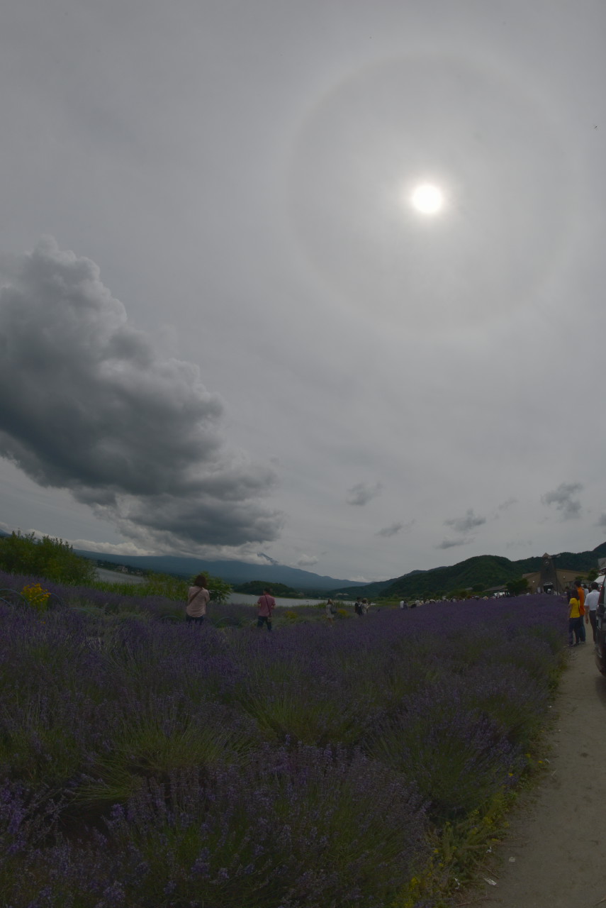 Rokinon:Fisheye 12mm/2.8、近くから無限遠まで撮る為にf16と絞り込みました。日暈が出ていたので地上と一緒に納めました。太陽を割と隅に配置したのに、フレアやゴーストが見当たら無いのは驚きです。これは素晴らしい。