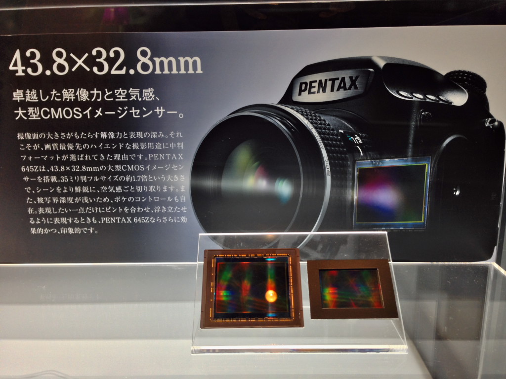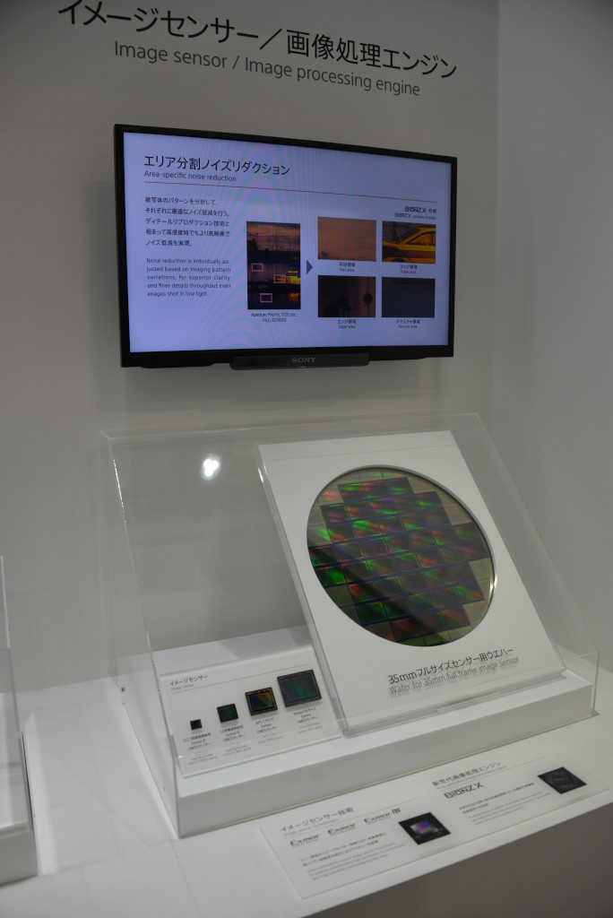 SONYブースにあった展示です。フルサイズは300mmウェハー(たぶん)からこれしか取れないのか・・・ さすが”半導体の非常識”だけあって、高くても仕方ないですね。