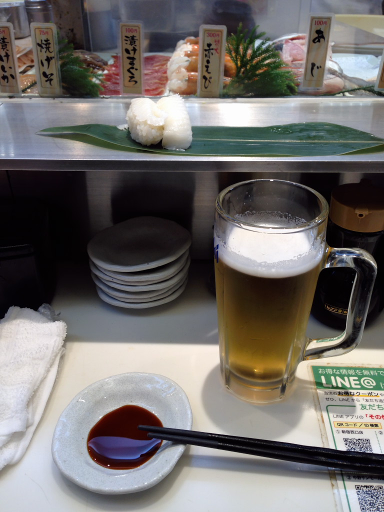 午前中に見学は終了。いつも行く回転寿司が満席行列だったので、立ち食い寿司を開拓しました。昼から飲むビールはいつも美味です。