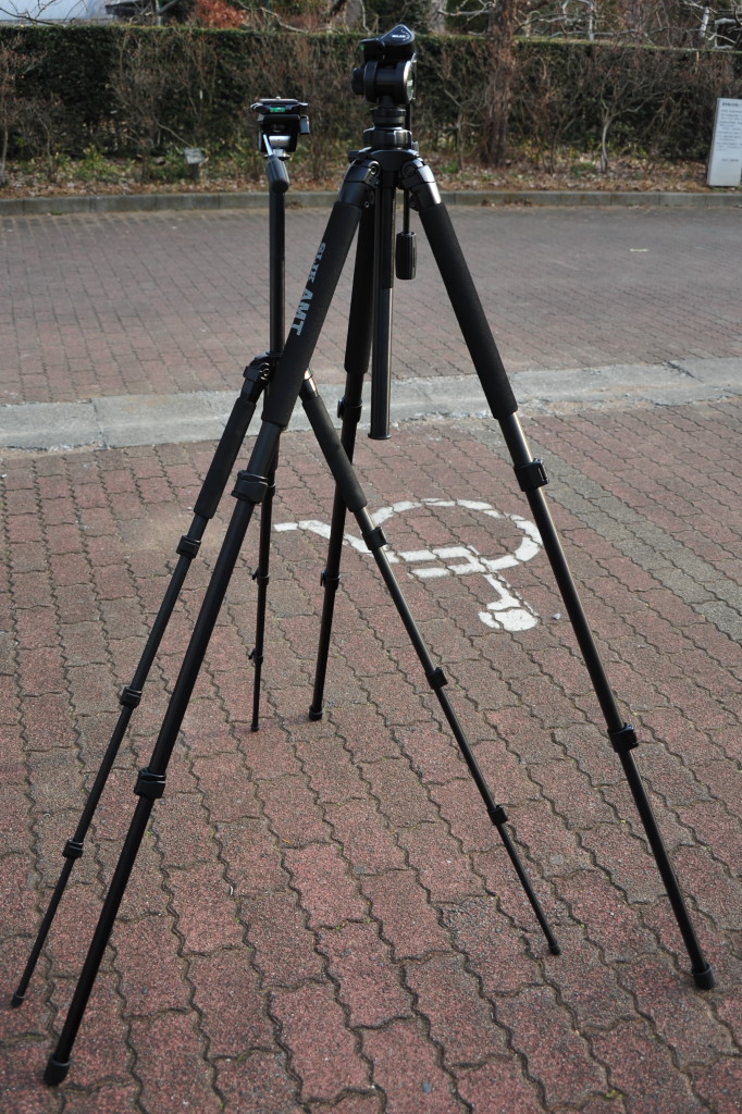 今まで使っていたのはどちらかというと小型なタイプ。コンパクトな4段式で1~2泊用スーツケースにも何とか入り、デジ一で使ってもバランスは良いと思っています。しかし、エレベータを伸ばしても腰を屈める形になるなど何となく不満もありました。