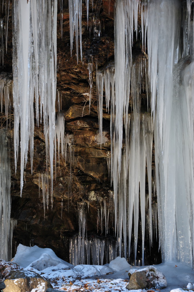 その後、夕方で暗くなりかけていましたが、大滝方面へ。寒さはこたえましたが、見事な氷柱に感動。ライトアップ開始早々で出発しましたが、青や緑に輝いていた様です。