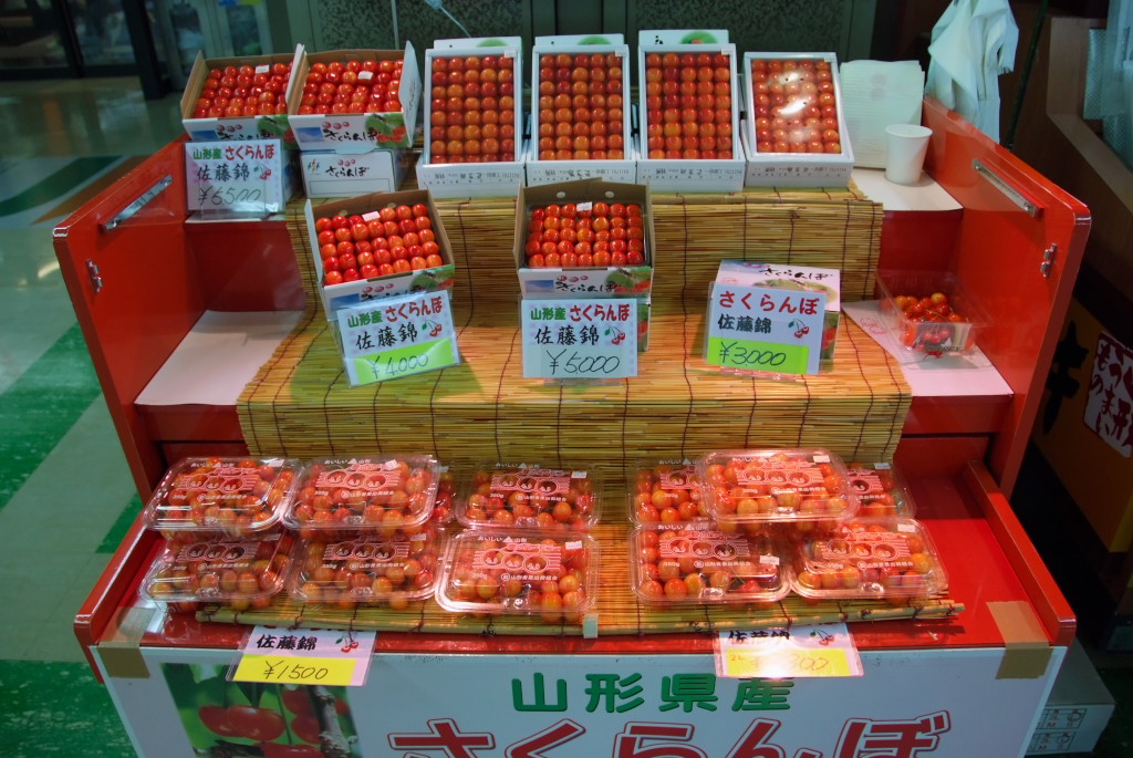 駅中のすし通りでがぜ雲丹はあるか、聞いてから店に入りました。食後はおみやげにさくらんぼ。