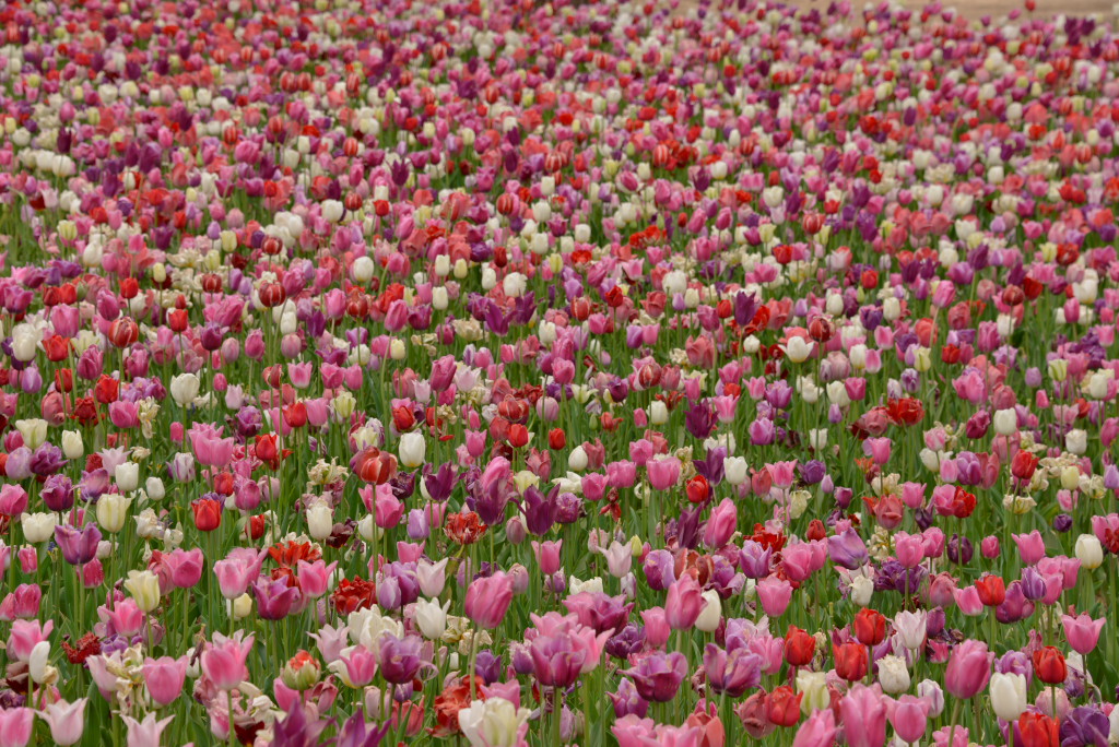 あえて色分けせずに植えられたチューリップを絨毯チックに。ちなみに、きれいに色分けして植えられたモノも多数ありました。