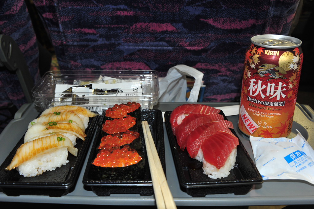 駅中のすし通りでがぜ雲丹はあるか、聞いてから店に入りました。食後はおみやげにさくらんぼ。