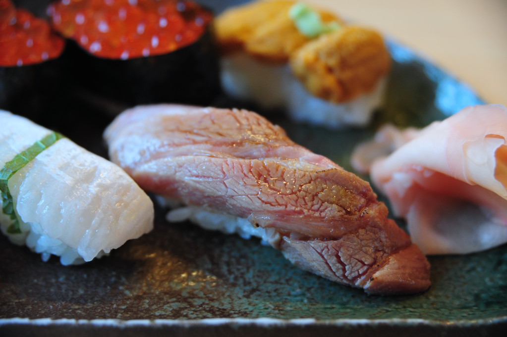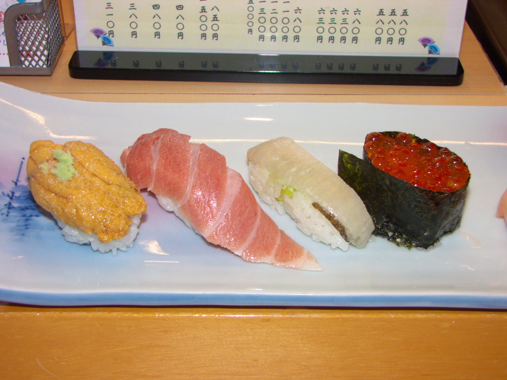 1枚目は鱶鰭、2~4枚目:中トロと雲丹は塩だけで食べるのですが、埼玉では味わえない、まさに目が覚める様な感激です。
