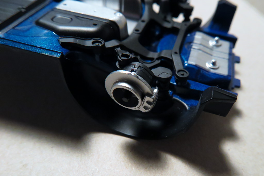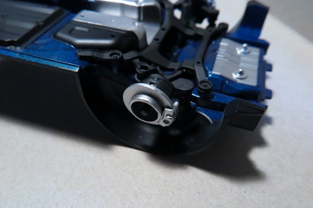 色々と小技を聞かせて自己満足しながら、プロペラシャフト、排気管とマフラー、リアサスメンバー等を組み付けました。