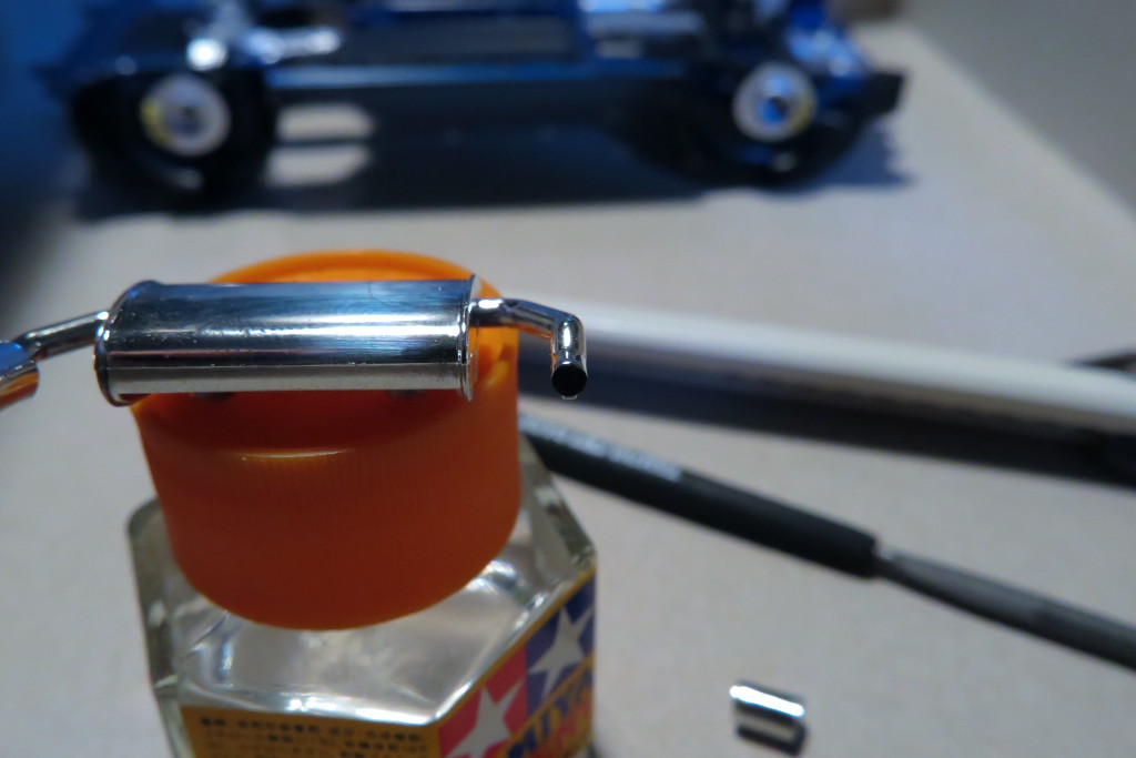 マフラーエンドが銀色だったのでヤスリをかけた上で黒く塗ります。